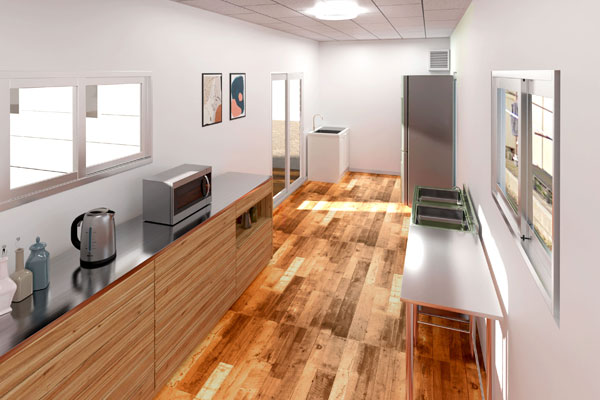 ご契約の手続きが完了しますと、工場にてトレーラーハウスの製造がスタートされます。 まずは設計通りに骨組みを構築し、その後ご注文いただいた通りの内装に仕上げていきます。