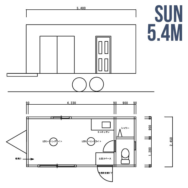 2,400m×5,400mm ※2,400m×7,200mm 応相談 ※2,400m×10,800mm応相談 |