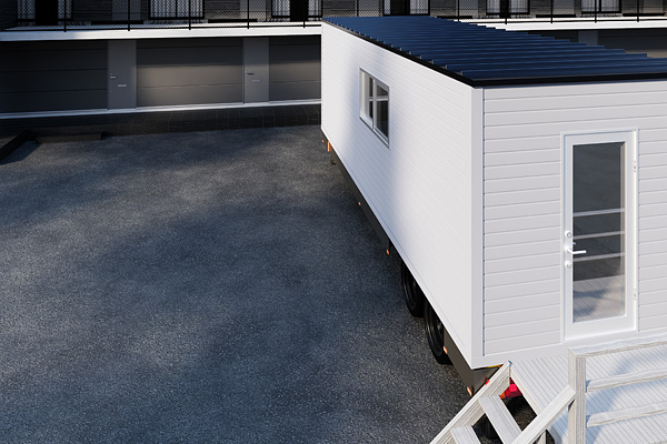 ご注文いただいたトレーラーハウスが完成すると、お客様の設置予定地へ輸送した上で納車となります。電気・ガス・水道などのライフラインについてもご希望に応じて対応致します。
